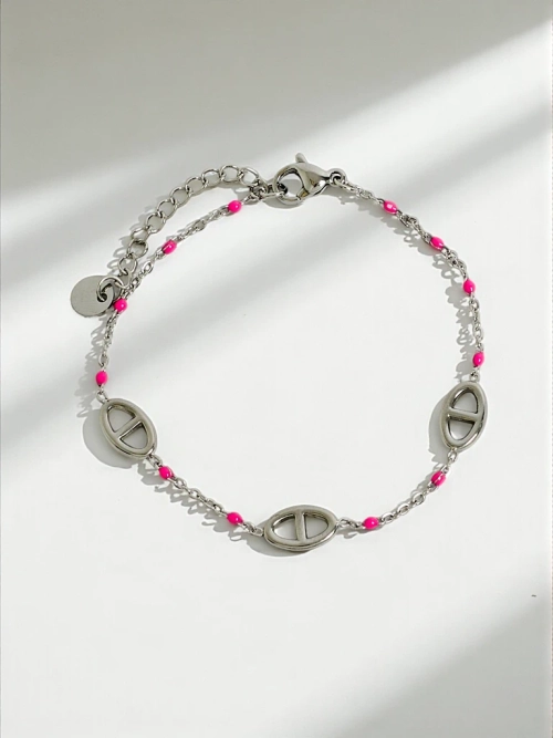 Callista Elegantia bracelet with links and pink beads, surgical steel
