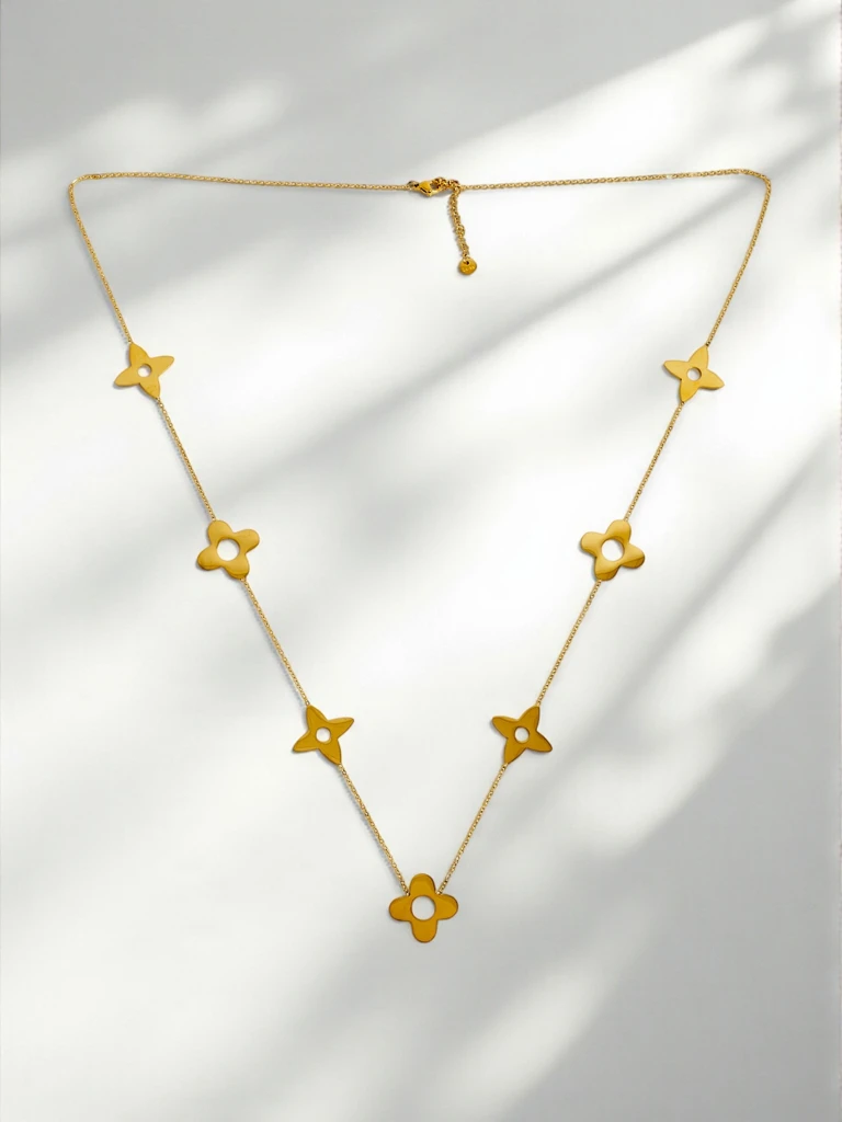- Gold-plated necklace with floral pendants – stylish jewelry for any occasion.