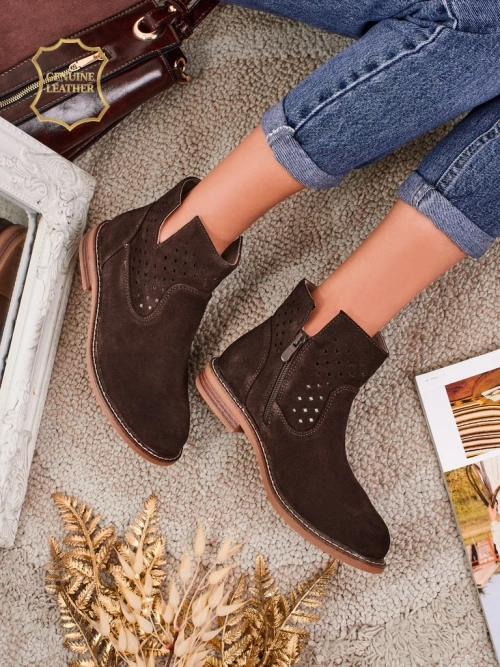• Ankle boots with a flat sole - style and comfort in one. The cutout at the ankle and zipper make them easy to put on. The whole shoe is made of natural suede leather and natural leather inside. This model will give you confidence!