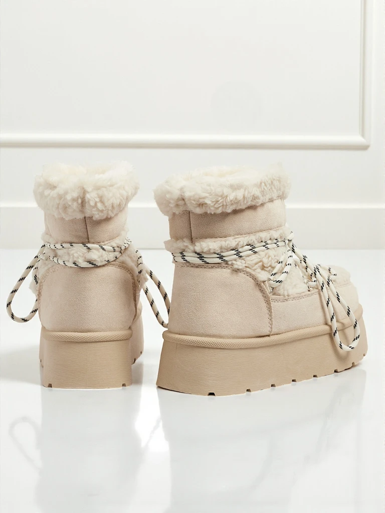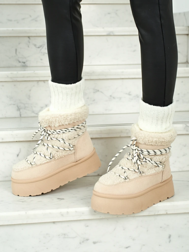 • Great women's winter snow boots with a thick sole. The upper is made of ecological suede leather and a fur-like material, the inside is insulated with fur. The perfect base for winter!