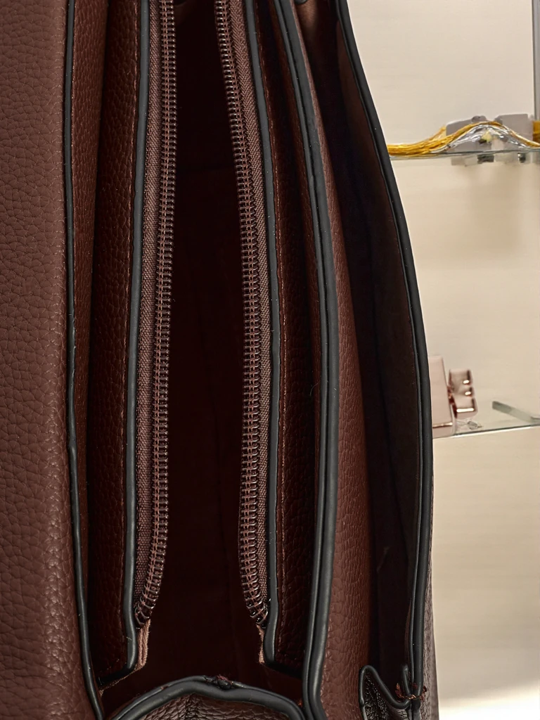 - Small bag made of a combination of eco-leather and eco-suede. 1 compartment, 3 pockets, zipper and adjustable strap. Style and functionality in perfect edition.
