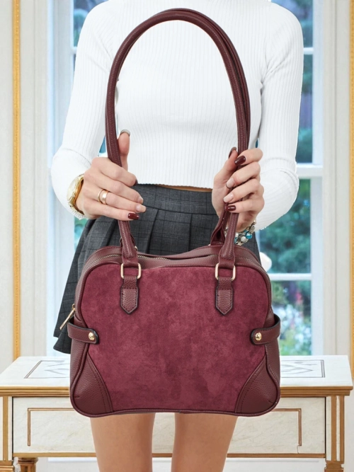 - Elegant women's bag made of eco-suede leather with eco-leather inserts. 1 compartment, 4 pockets, detachable, adjustable strap. Ideal for work and everyday use - spacious, fashionable and practical.