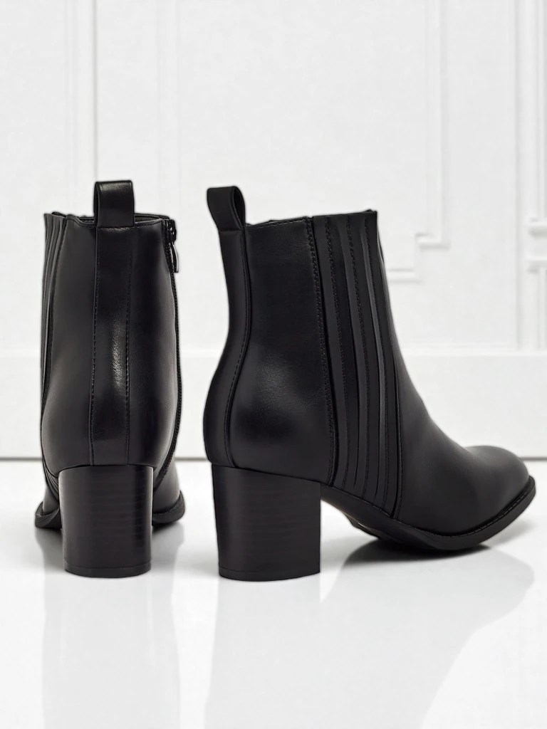 - Comfortable heeled ankle boots, made of eco-leather. The model is zippered and has insulation in the form of a delicate fur. An ideal choice for autumn!