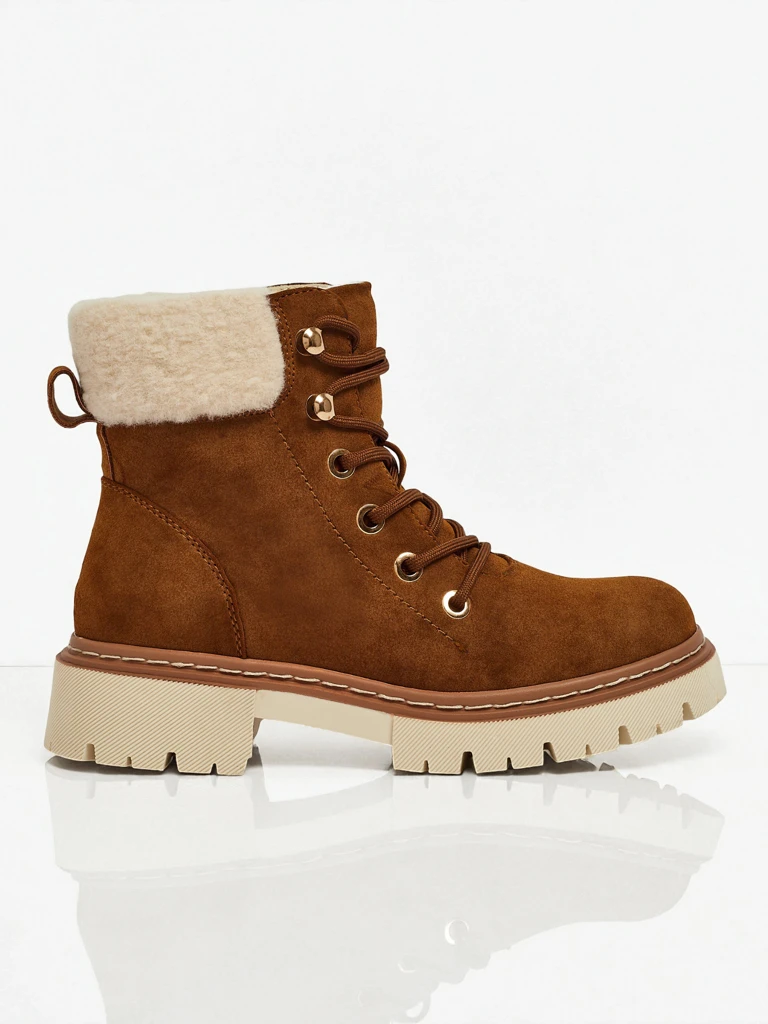 • Women's trekking boots with a lace-up upper. The material is ecological suede leather. Insulated with a delicate fur lining inside. Perfect for winter!