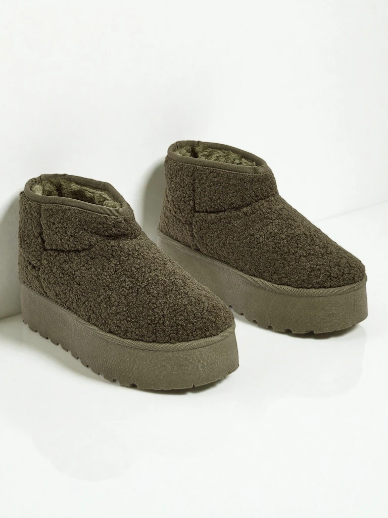 - Great women's winter snow boots with a thick platform sole. The upper is made of a faux fur fabric, and the inside is insulated with fur. The perfect base for winter!