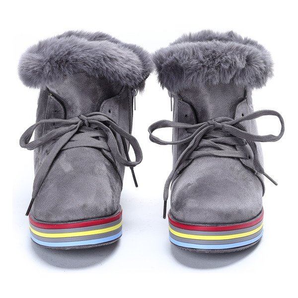 - Stylish boots with a sporty look, made of eco suede. The upper is decorated with the "FASHION" print, and the colored piping around the sole. They have fur insulation on the inside. Lace-up model and zippered.