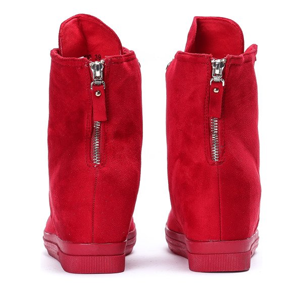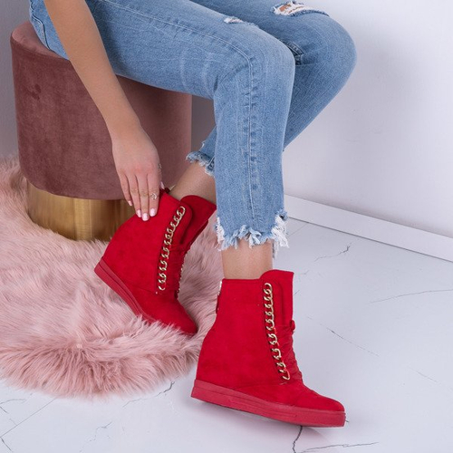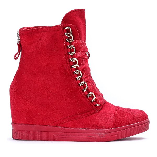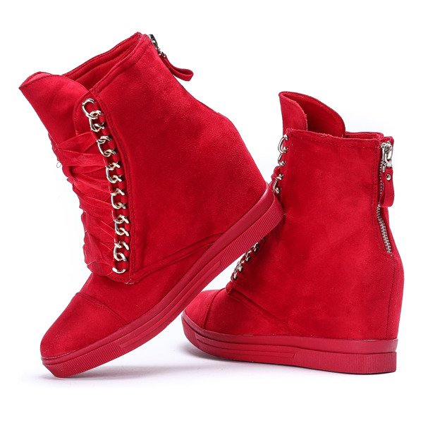 • Wedge sneakers made of ecological suede leather. Footwear decorated with a chain through which a ribbon is intertwined. The back part is fastened with a zipper. The model is very comfortable and solidly made.