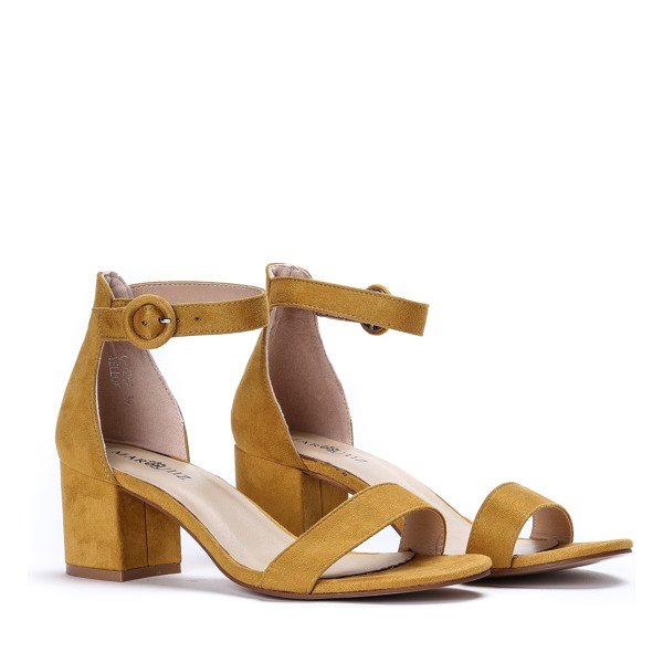• Classic sandals on a low post, fastened with a buckle. The upper is made of ecological suede. The insole is covered with ecological leather. Perfect for elegant and everyday stylizations!