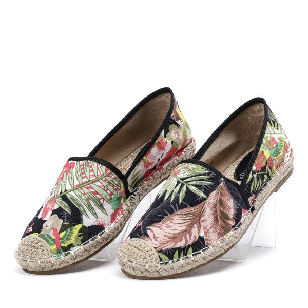 Czarne espadryle z kolorowym motywem kwiatowym Baltea - Obuwie