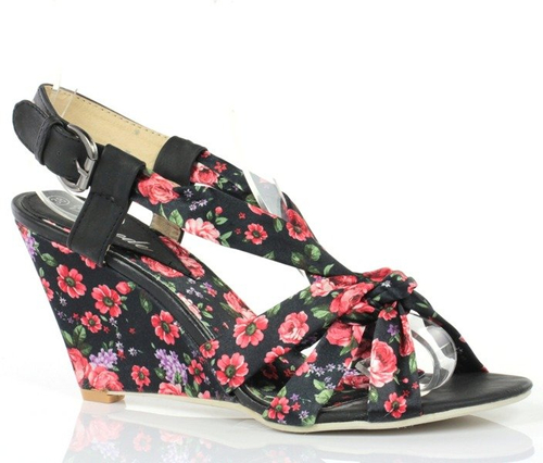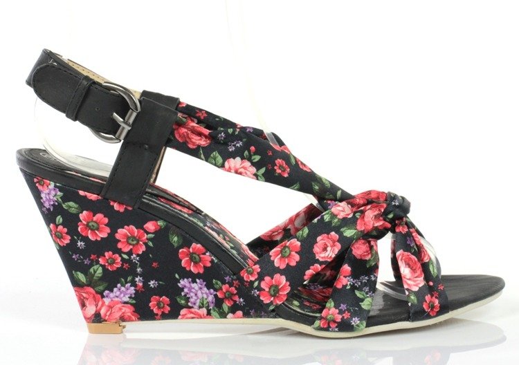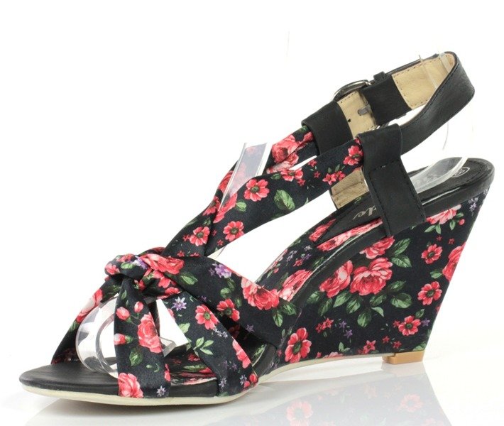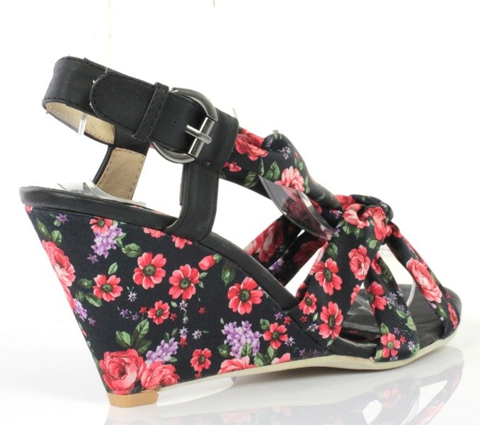 - Bardzo wygodne sandały na koturnie z motywem kwiatowym. Obuwie zapinane sprzączką. Idealne dla Pań w dobrym stylu!