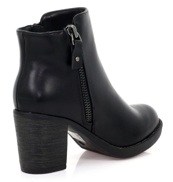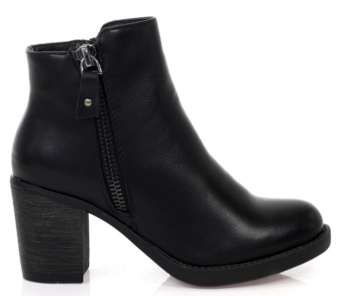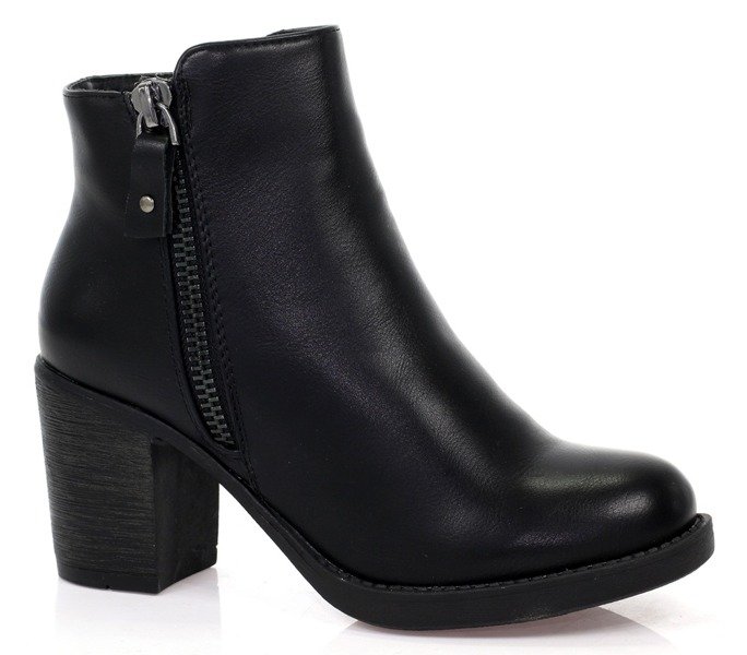 • Śliczne, zasuwane botki wykonane z ekologicznej skóry. Klasyczny fason z stabilnym obcasem, bez konieczności wymiany fleków. W środku delikatne ocieplenie. Gruba, stabilna podeszwa na słupku.