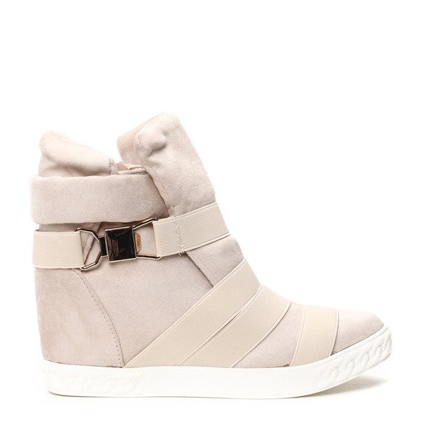 Beżowe sneakersy na krytym koturnie z ozdobnymi paskami Petiena - Obuwie