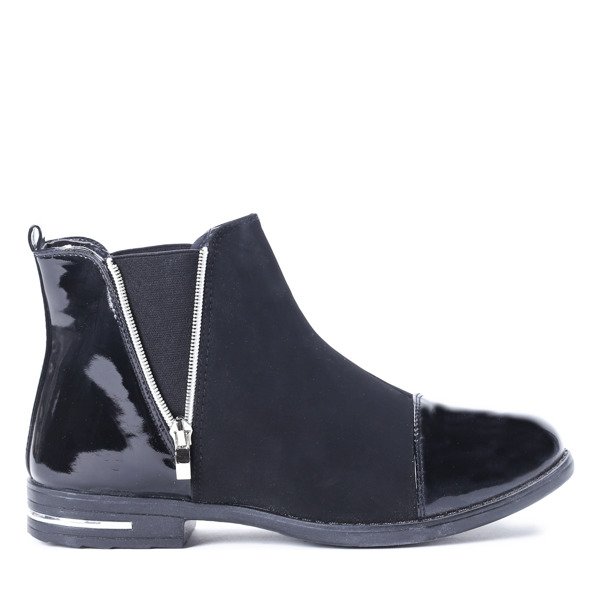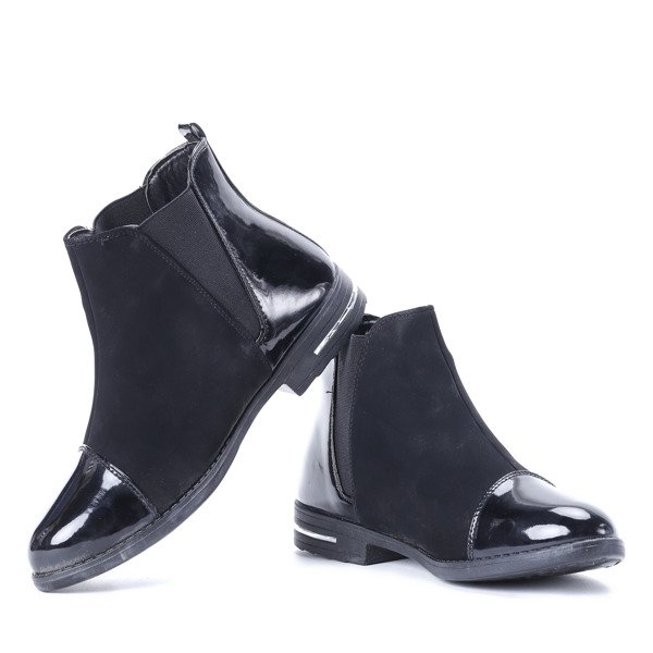 Czarne botki zamsz/skóra ekologiczna - Obuwie