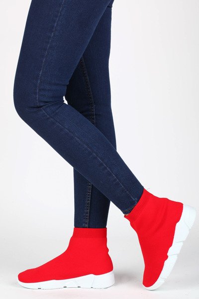 Czerwone, sportowe obuwie z tekstylną cholewką - Obuwie