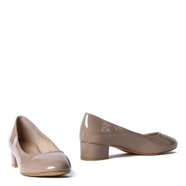 Czółenka na niskim słupku-kolor khaki - Obuwie