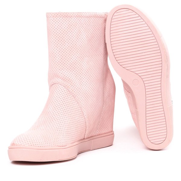- Klasyczne botki na krytym koturnie w różowym kolorze. Cholewka wykonana ze skóry ekologicznej zamszowej oraz posiada ozdobny zamek. Model zapinany na suwak. Pasują do codziennych jak i wyjątkowych sytuacji. Najlepiej współgrają z dopasowanymi spodniami