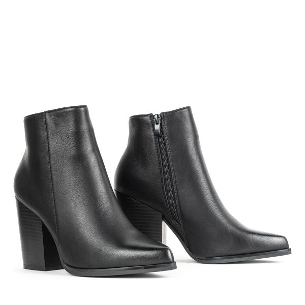 - Eleganckie buty damskie na słupku wykonane z czarnej eko-skóry. W środku delikatnie ocieplane futerkiem. Nosek zakończony w szpic, który optycznie wyszczupla nogi. Botki będą doskonałym dopełnieniem jak i podstawą każdej stylizacji.