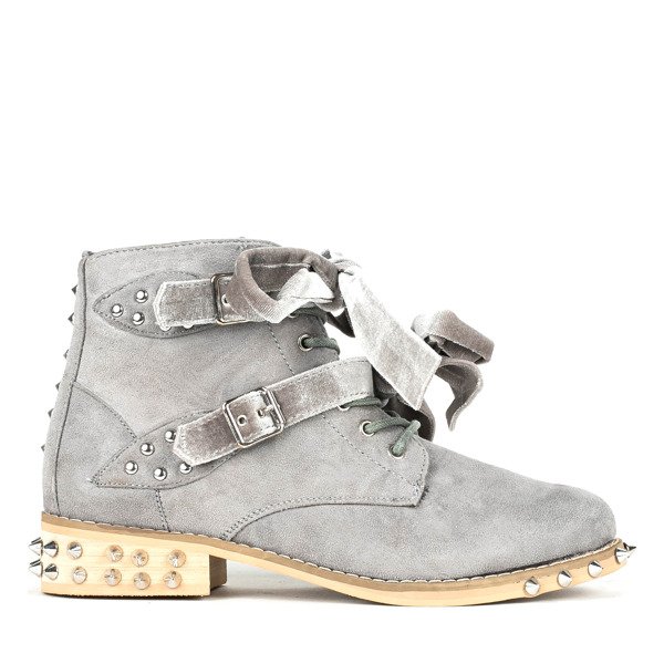 Szare workery z ćwiekami Millerro - Obuwie