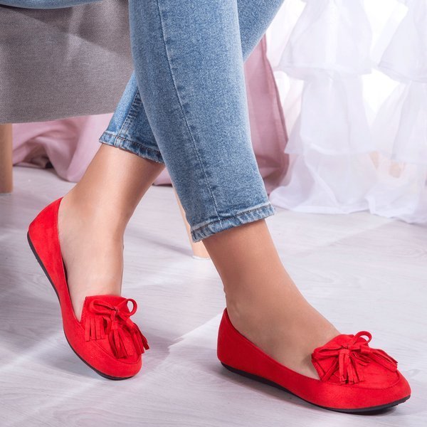 Czerwone baleriny z frędzlami Spring Garden - Obuwie