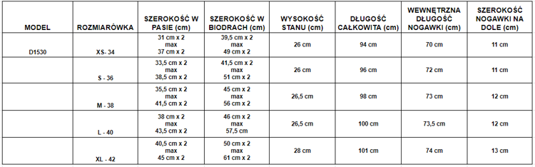 - UWAGA: model posiada wąską nogawkę. Dokładność pomiaru (+/-) 1 cm.