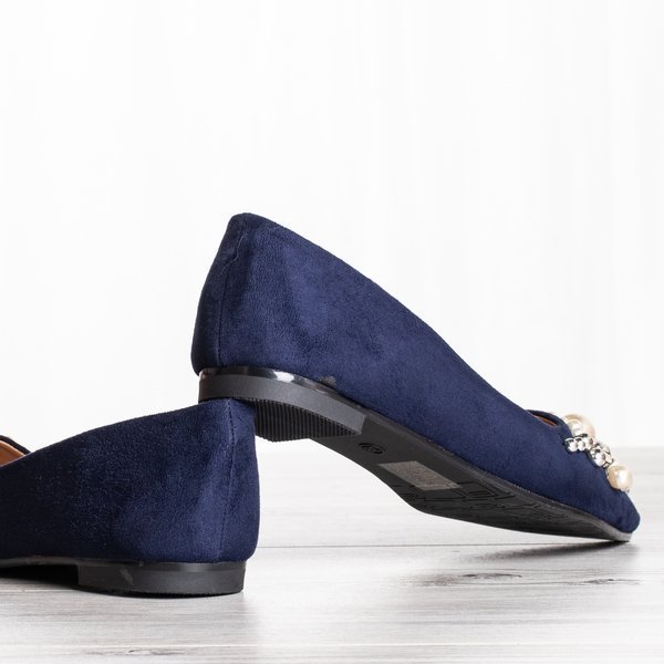 Granatowe balerinki z perełkami oraz cyrkoniami Eithne - Obuwie