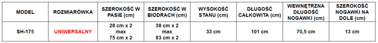 Tabela rozmiarów  - przed zakupem sprawdź  rozmiarówkę!