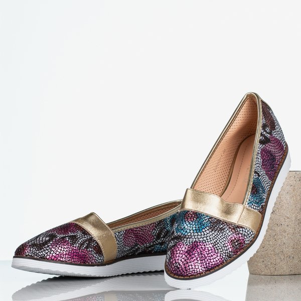 Wielokolorowe baleriny damskie ze złotym wykończeniem Nasulsha - Obuwie