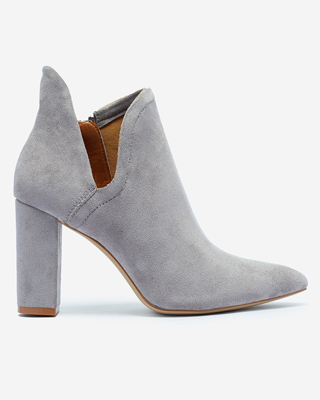 Szare damskie botki na słupku z wycięciem Alania - Obuwie