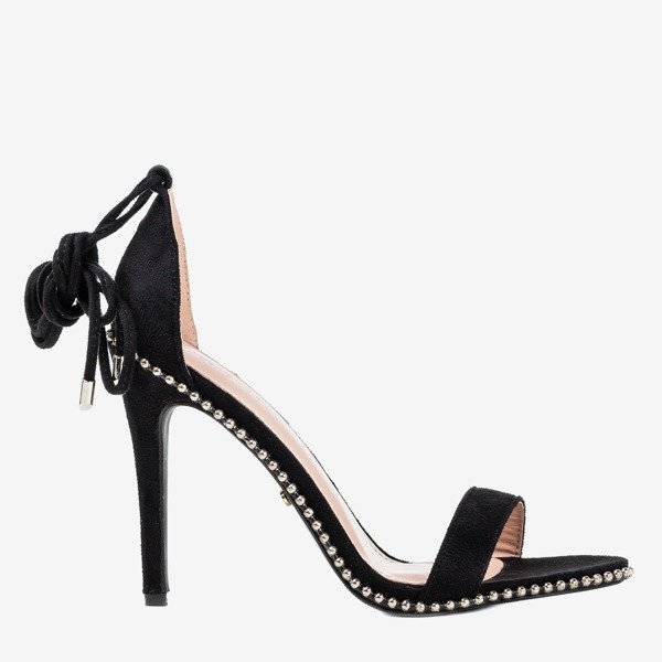 OUTLET Czarne wiązane sandały na wyższej szpilce Taya - Obuwie