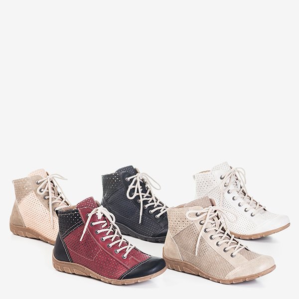 - Damskie sportowe buty z wyższą cholewką i na płaskiej podeszwie. Cholewka wykonana z eko-skóry z ażurowym zdobieniem. Model sznurowany i zapinany na suwak. Solidnie wykonane i niesamowicie wygodne!