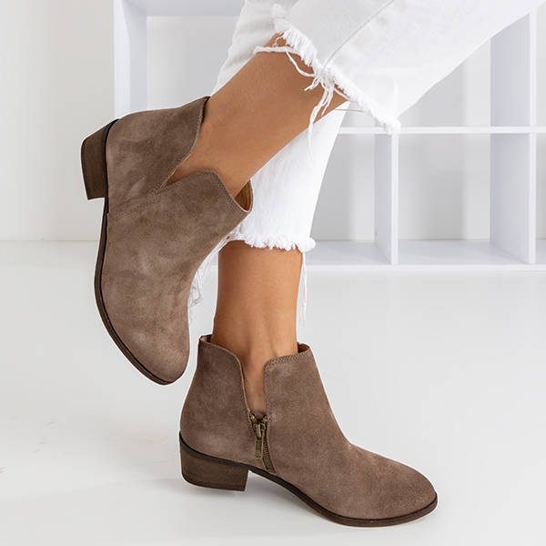 • Klasiski sieviešu zābaki ar plakanu papēdi. Materiāls izgatavots no dabīgas zamšādas, ar eko ādas iekšzoli. Augšdaļai sānos ir rāvējslēdzējs, un tai ir izgriezumi. Tie būs lielisks dekors ikdienas stilam.