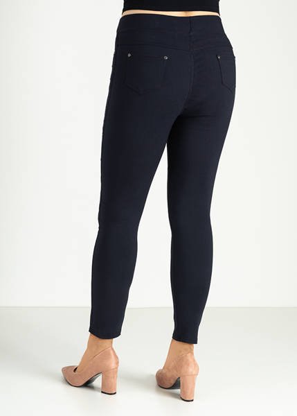 - Damskie spodnie typu tregginsy imitujące jeansowe rurki. W tylnej części dwie wsuwane kieszonki, w pasie - rozciągliwa guma. Elastyczny materiał idealnie dopasowuje się do Twojego ciała i zapewni Ci niezwykły komfort.