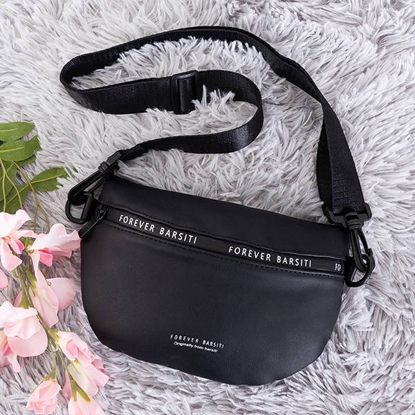 - Mała torebka typu nerka wykonana ze skóry ekologicznej. W środku dodatkowa kieszonka zapinana na suwak. Paseczek z możliwością regulacji