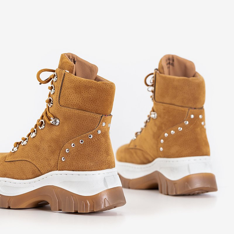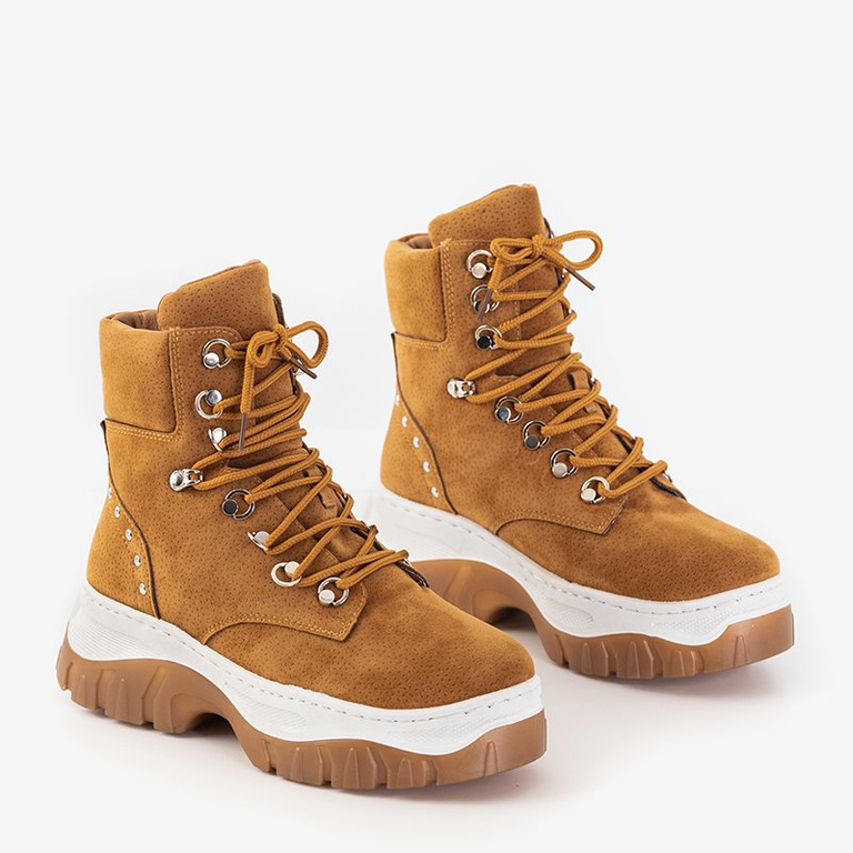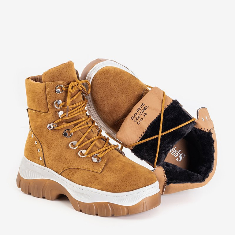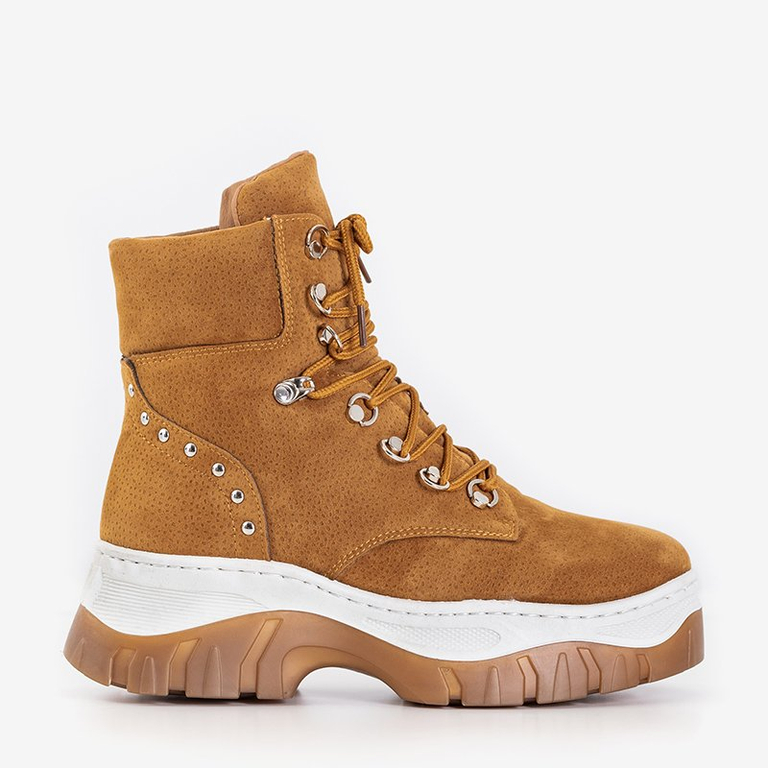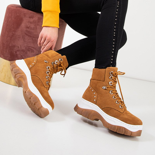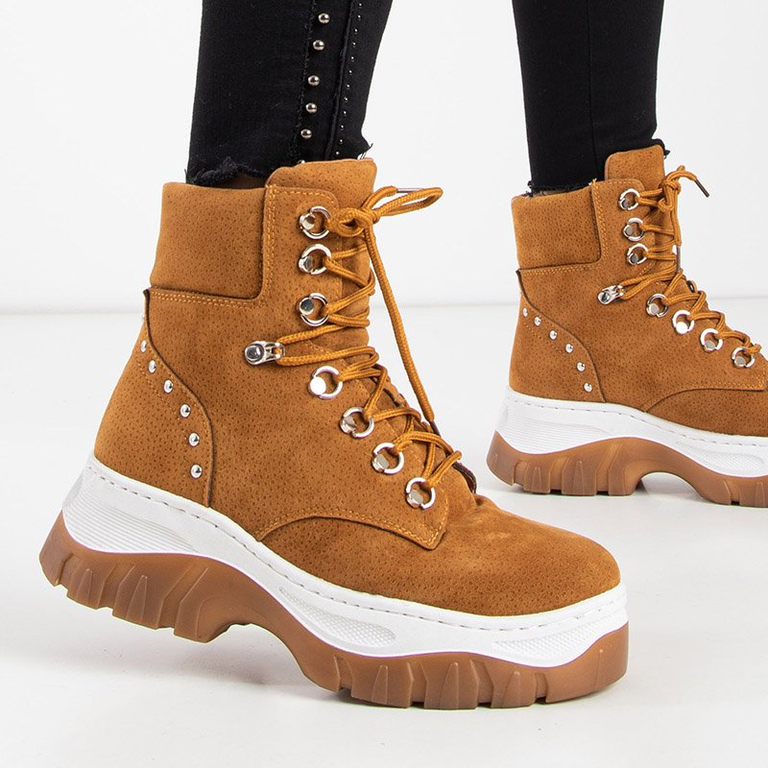 Gaiši brūni sieviešu izolēti zābaki uz Kazumi platformas - Apavi
