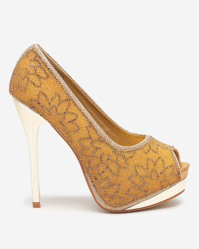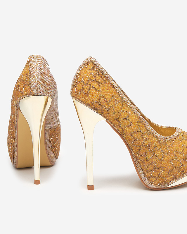 Zelta sieviešu brokāta pumpas ar kubiskā cirkonija oksiju Vida - Apavi