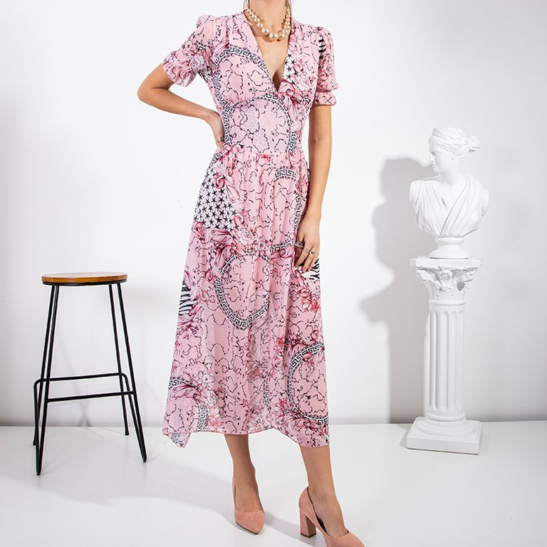 • Stilīga sieviešu maxi kleita, no viegla auduma - ar oderi. Modelis ar īsām piedurknēm, V veida kakla izgriezumu, elastīgu gumiju aizmugurē un uzšūtu svītru priekšpusē. PIEZĪME: Mērījumu precizitāte (+/-) 1 cm.