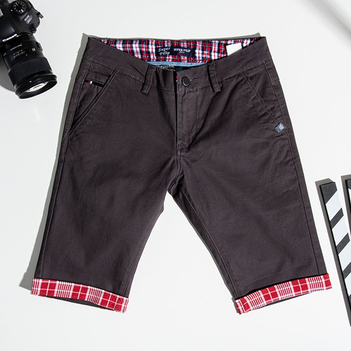 Tumši pelēki vīriešu šorti ar bordo ielaidumiem - Apģērbs