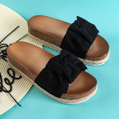 Melnas sieviešu čības ar loku Jenis - Apavi