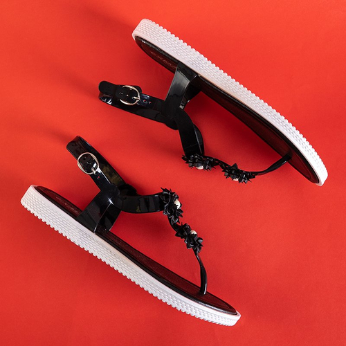 Melnas sieviešu sandales a'la flip-flops ar ziediem Dosana - Apavi