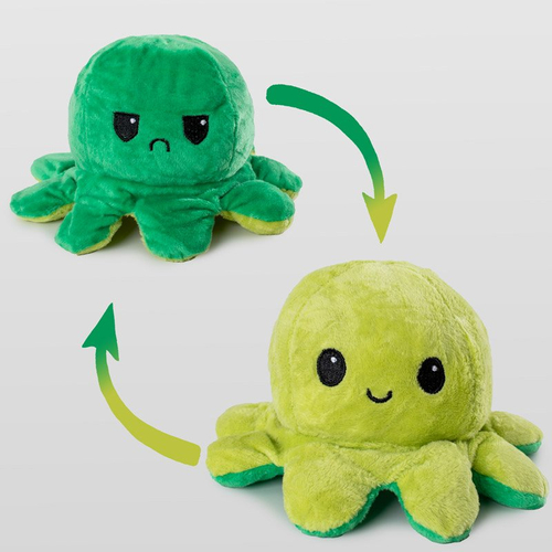 - Jauka un mīksta plīša astoņkāja rotaļlieta Jūsu bērnam! Divpusējs talismans - ar smaidošu seju vienā pusē, bet skumju seju otrā. Ideāla rotaļlieta dāvanai. Izmēri: 18 cm x 9 cm.