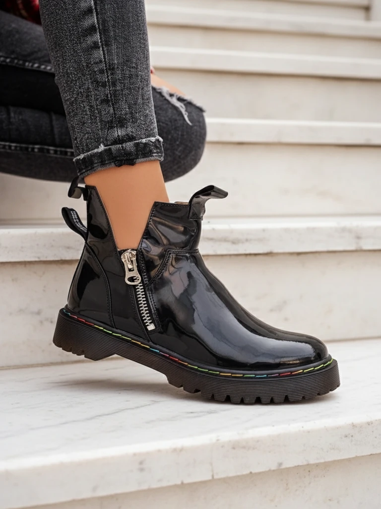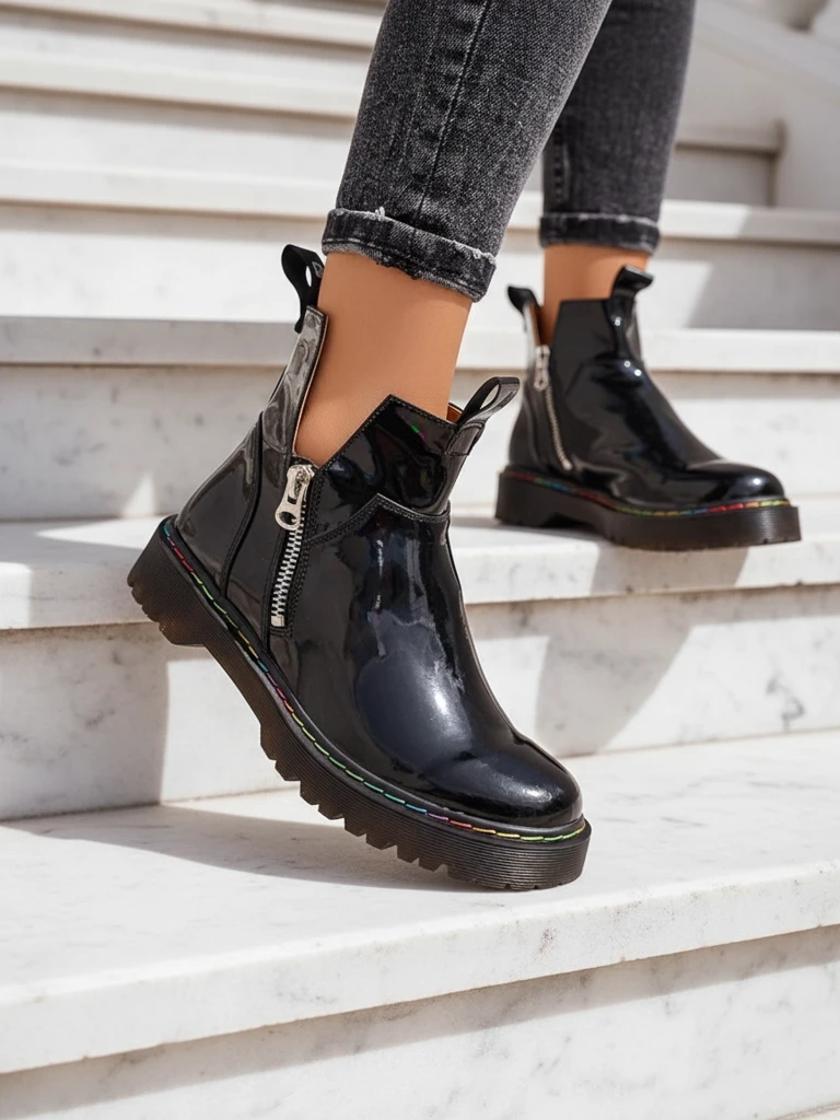 Melni lakoti sieviešu zābaki ar Odeta rāvējslēdzēju - Apavi