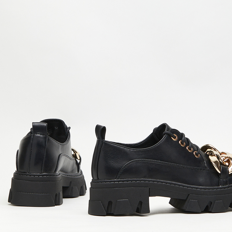 - Unikāli oksfordas apavi sievietēm, izgatavoti no ekoloģiskas ādas. Šņorējama augšdaļa, dekorēta ar zelta elementu. Iekšzole arī no eko ādas, zole no gumijas materiāla. Modelis būs lieliski piemērots elegantām stilizācijām!