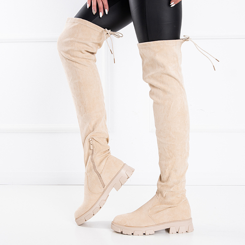 Eko zamšādas smilškrāsas platpapēžu zābaki pāri ceļgaliem Engi - Apavi