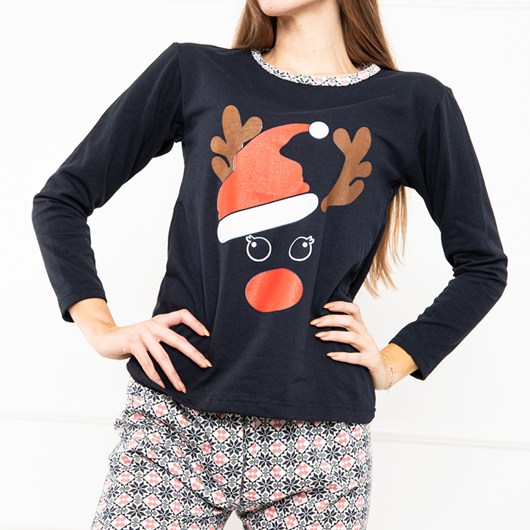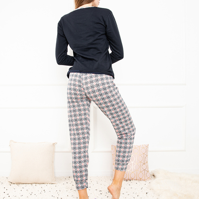 - Sieviešu pidžama sastāv no blūzes ar garām piedurknēm un biksēm ar šaurām kājām. Tie ir izgatavoti no mīksta kokvilnas materiāla un apdarināti ar dekoratīvu apdruku. PIEZĪME: Mērījumu precizitāte (+/-) 1 cm.