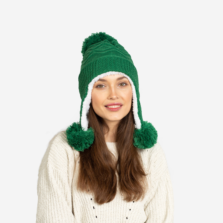 Sieviešu tumši zaļa izolēta cepure ar pomponiem - Aksesuāri