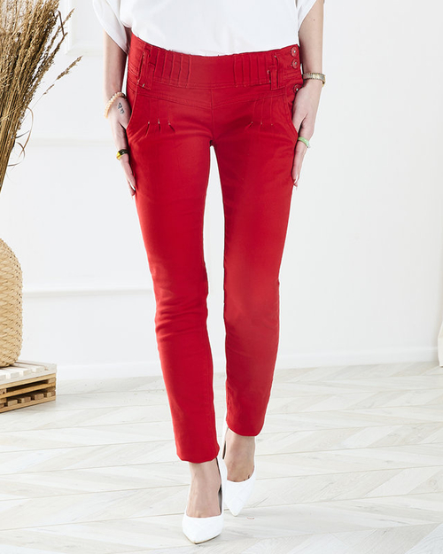 Sieviešu auduma bikses ar zemu jostasvietu sarkanā krāsā - Apģērbs