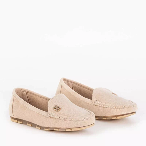 OUTLET Sieviešu bēši eko-zamšādas mokasīni ar Pixila dekorāciju - Apavi