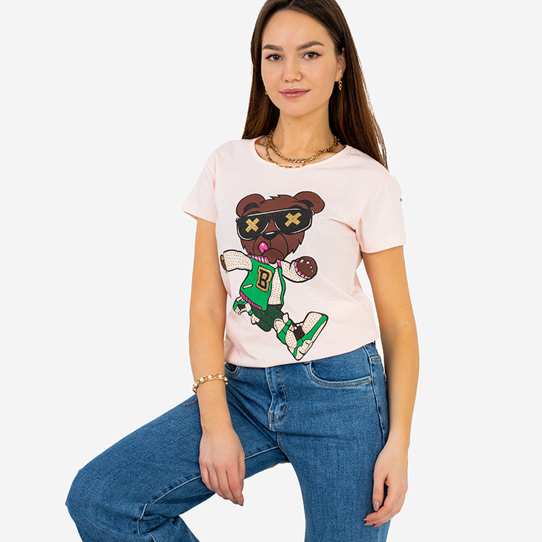 Sieviešu T-krekls ar apdruku rozā krāsā - Apģērbs