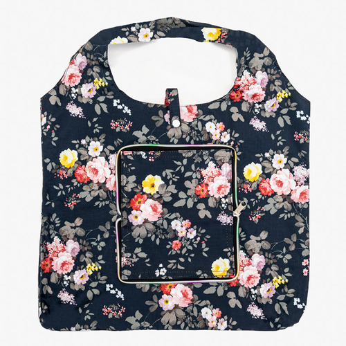 Tumši zils iepirkumu maisiņš ar makā salocītu ziediem - Aksesuāri