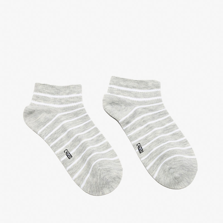 - Klasiskas sieviešu īsās svītrainās zeķes no kokvilnas materiāla. Tie labi pieguļ pēdai un nodrošina ilgstošu komfortu!